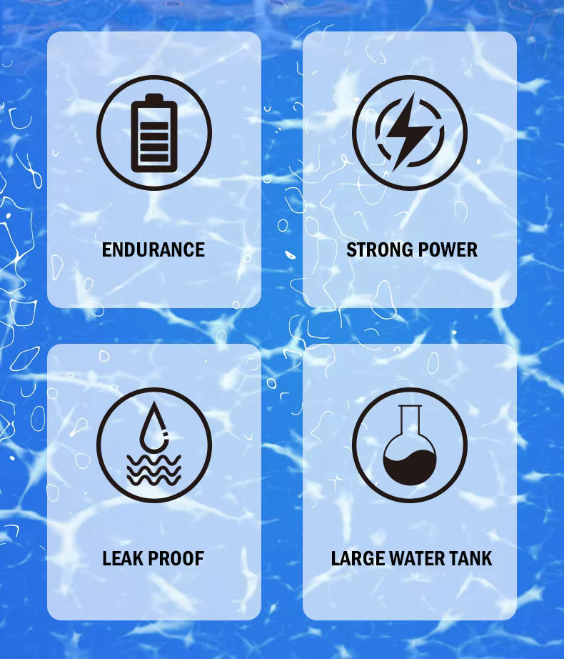 - Rechargeable Lithium Battery: Lasts for multiple water fights on a single charge.